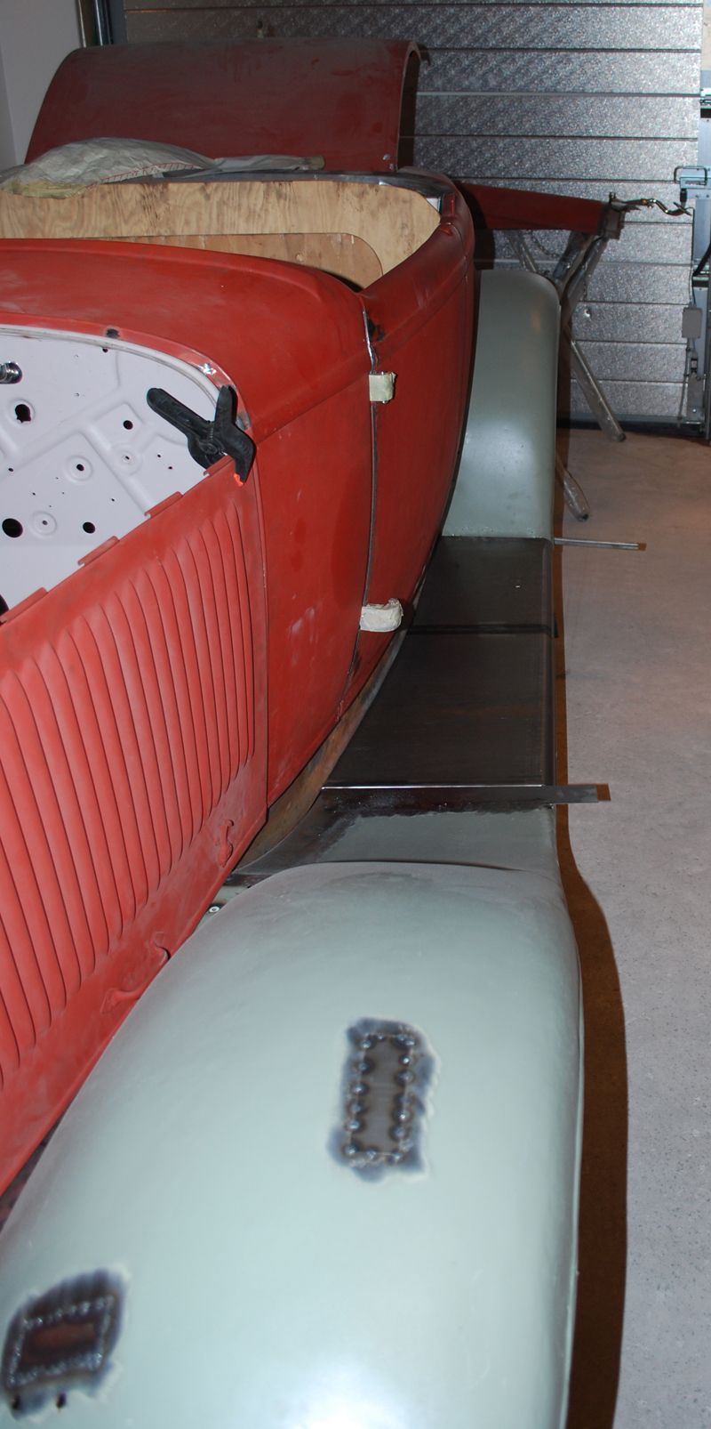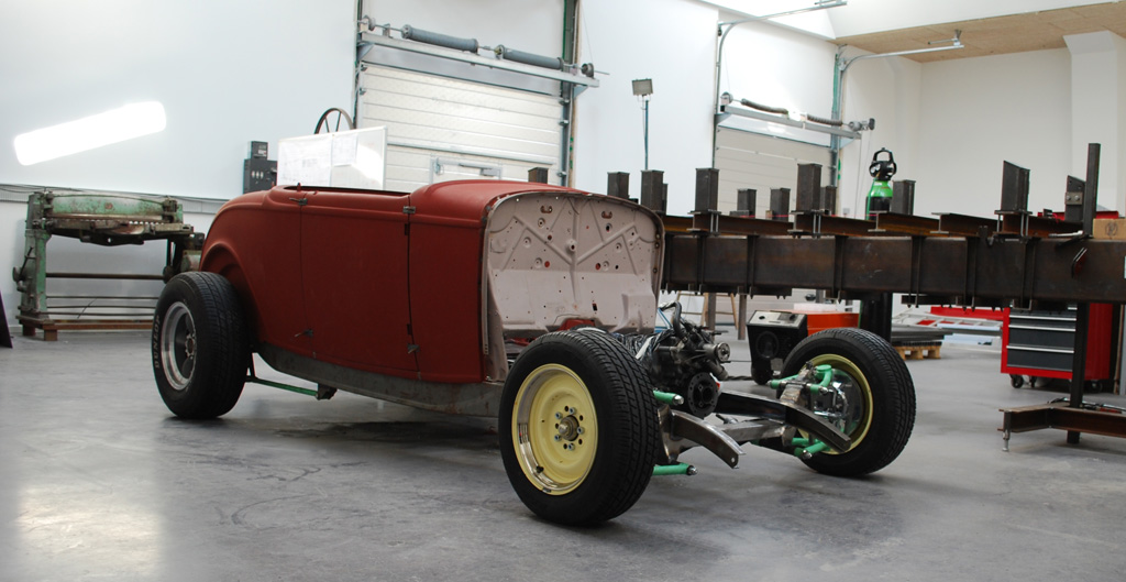 Denne roadster er en reproduktion af en orginal bil med mange opdateringer. Karoseriet er et reproduceret karosseri fra Brookville i Ohio. Denne karosse blev købt i papkasser og er blevet samlet og monteret på et specielt lavet chassis. Chassiet er lavet efter orginale 1932 ford tegninger, i den specielt