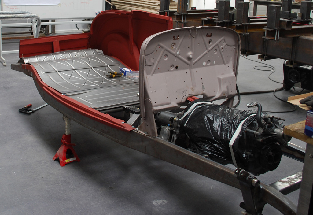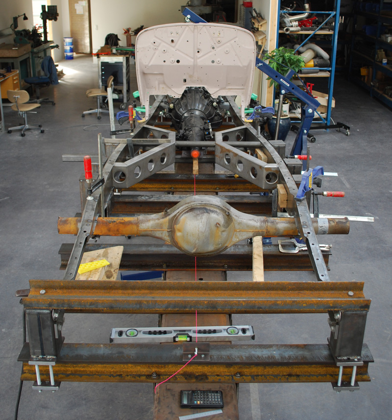 fremstillede svejse opstilling, sat op til netop 1932 ford chassis rammer. Motoren er en 302 cui Ford med en C4 tre-trins automat som f.eks. kunne findes i en Ford Mustang sidst i tredserne.